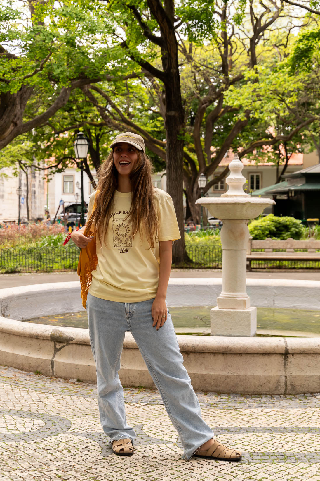 Radiating optimism and warmth, this hand-drawn design in deep brown is printed on soft butter yellow organic cotton, bringing together comfort, symbolism, and style. Ethically hand-printed in Portugal using eco-friendly, water-based inks, this tee invites you to live with intention and light up your path.