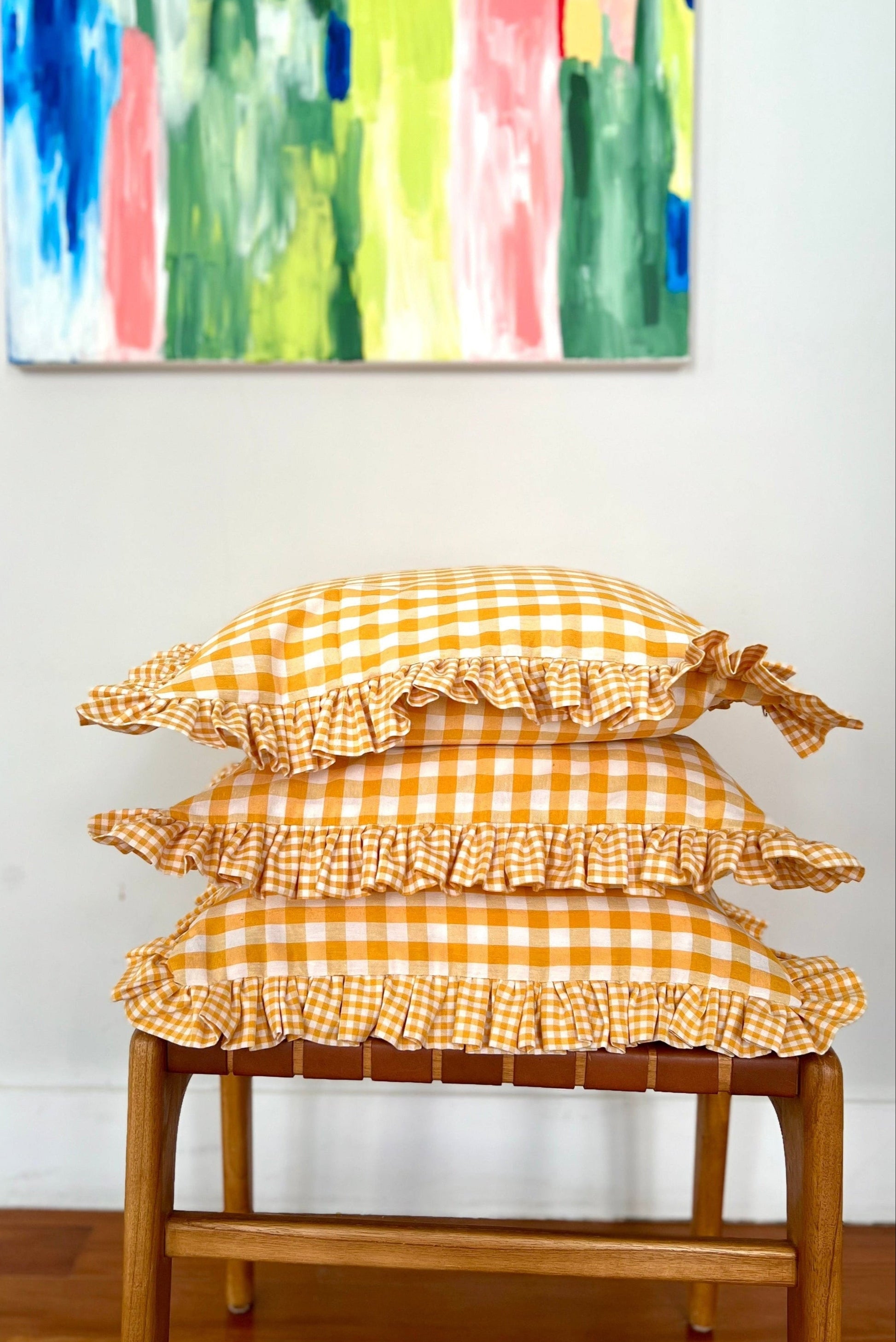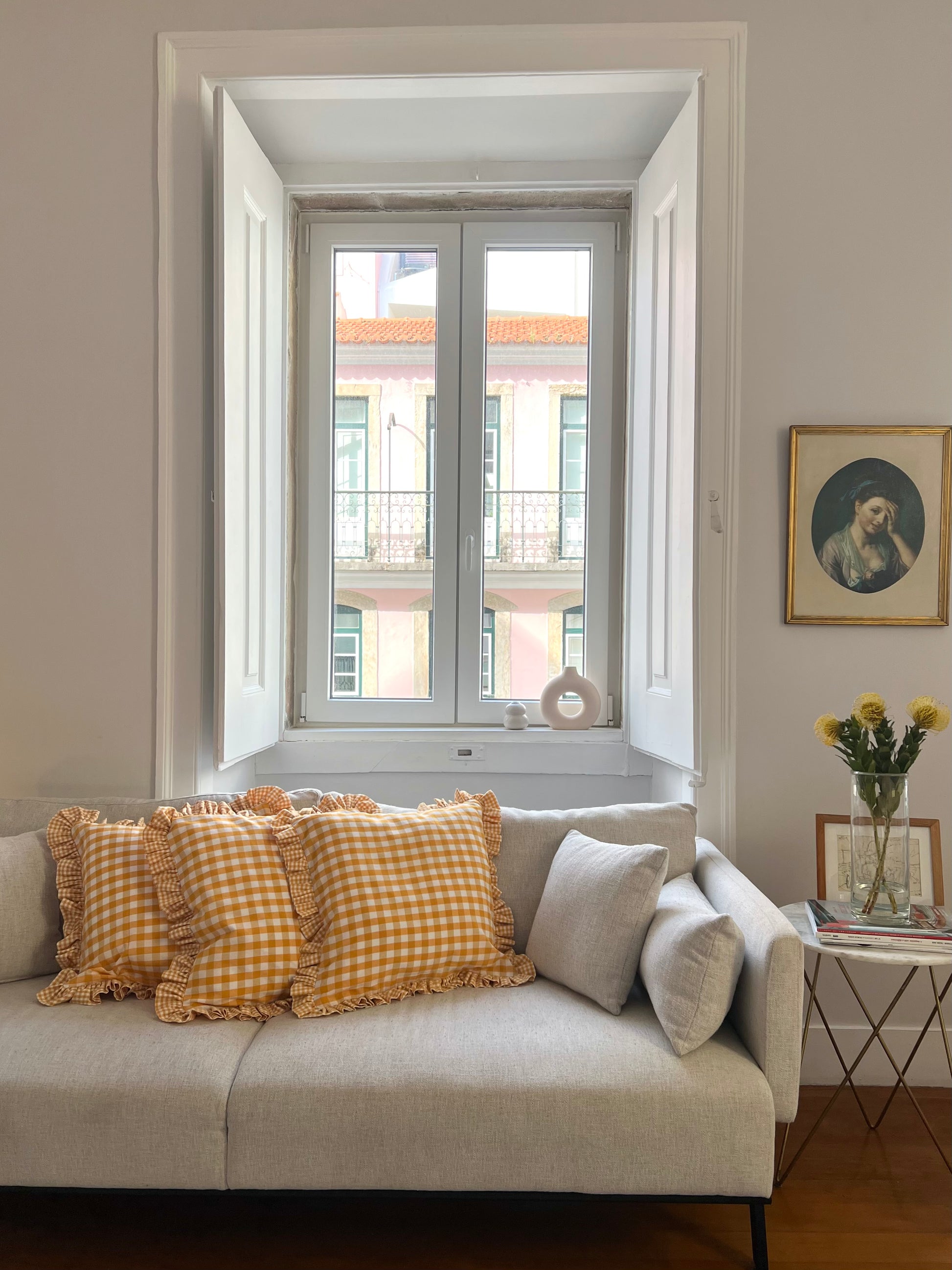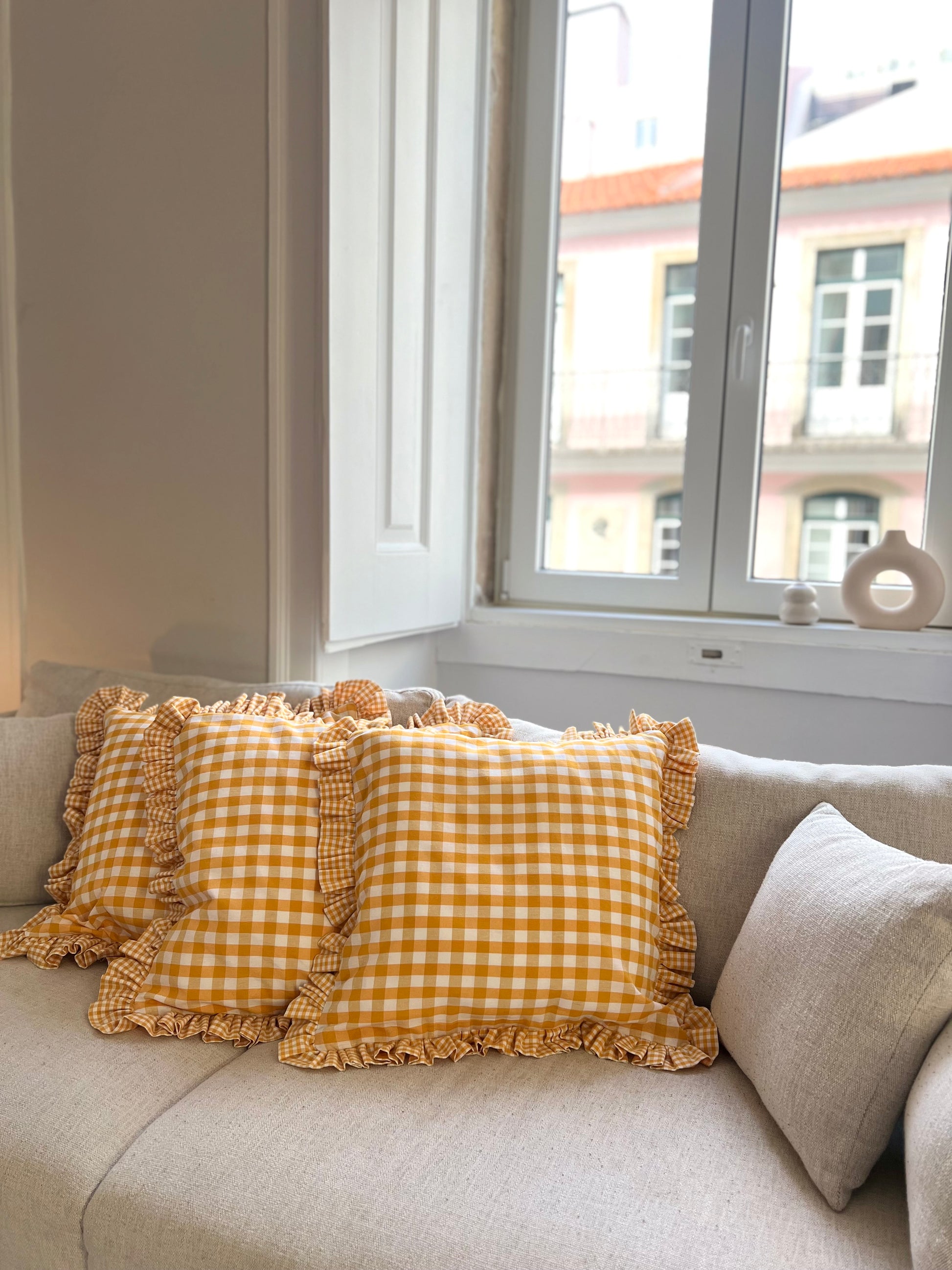 Add a touch of warmth and whimsy to your space with our Yellow Vichy Cushion Cover, featuring the same cheerful yellow gingham and delicate mini vichy trim that brings joy to every corner. Whether on your sofa, armchair, or bed, it’s a cozy companion with countryside soul.